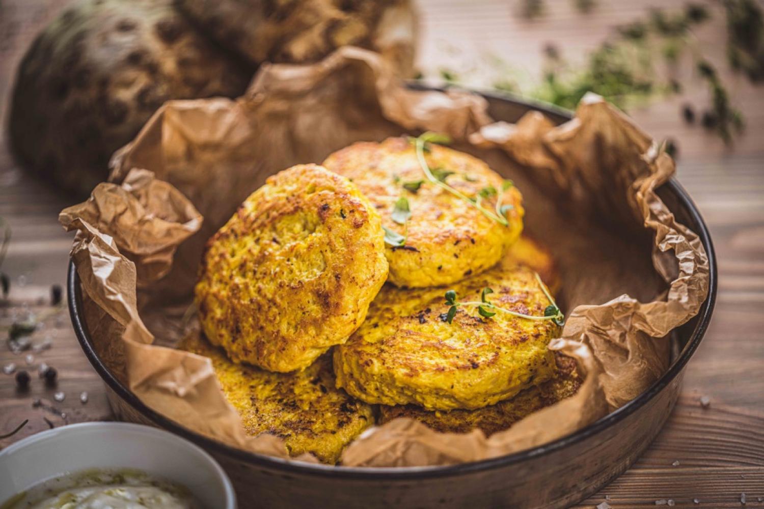 Základem těchto karbanátků je celer, oblíbená kořenová zelenina známá pro své protizánětlivé účinky a obsah řady vitaminů (B, C, A) a minerálů (draslík, vápník, hořčík, železo).