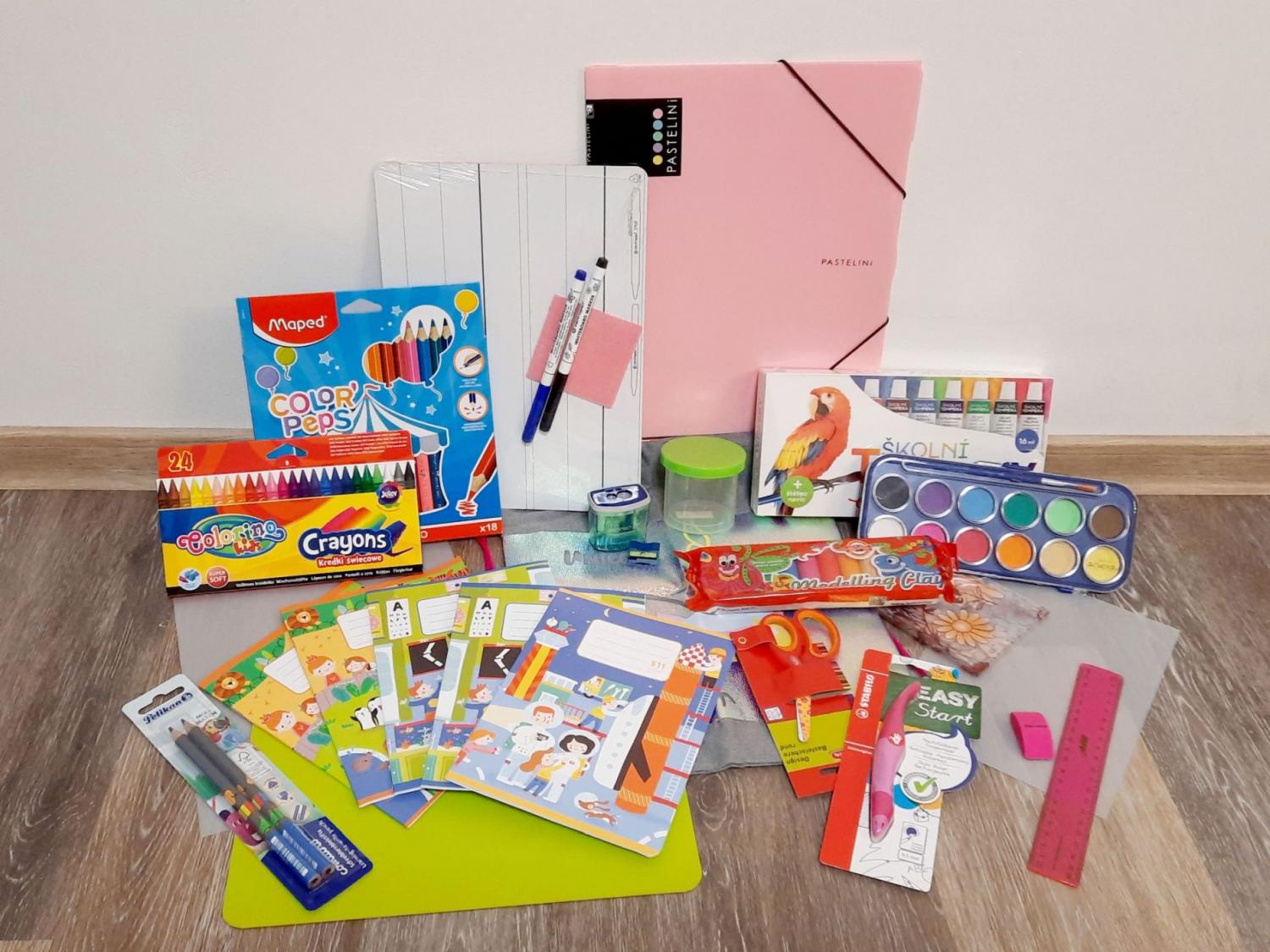 Vybrat vybavení do penálu bylo v podstatě jednoduché. Stačilo vybrat si z velkého výběru kancelářských a výtvarných potřeb. Z naší školy, jsme dostali pro prvňáčky za úkol vybavit penál kvalitními pastelkami. Já zvolila tlustší trojhranné, pro posílení správného úchopu, s nelámavou tuhou. Dále dvěma tužkami č.2 ideálně také trojhrannými, ořezávátkem ke konkrétním pastelkám a tužkám, gumou, 20cm pravítkem, nůžkami s kulatou nebo gumovou špičkou a dvěma pery, které ale začnou používat až v průběhu podzimu. Doporučené nám bylo ergonomické, které napomáhá správnému držení s širší stopou a jedno plnící. Vše tedy šlo do nákupního košíku. Naše paní učitelka bude zadávat domácí úkoly na jednotlivých listech, na které bylo potřeba koupit plastové desky, do kterých si je budou zakládat, aby se jim v aktovce nepomačkaly. Nesmí chybět ani mazací tabulka se speciálními fixy a fólie na psaní obyčejnou tužkou. V seznamu ze školy jsme také dostali 2x sešit s pomocnou linkou, 2x kostičkovaný sešit, 1x sešit A4 bez linek, obaly a obal na notýsek školáka, který dostanou ve škole.