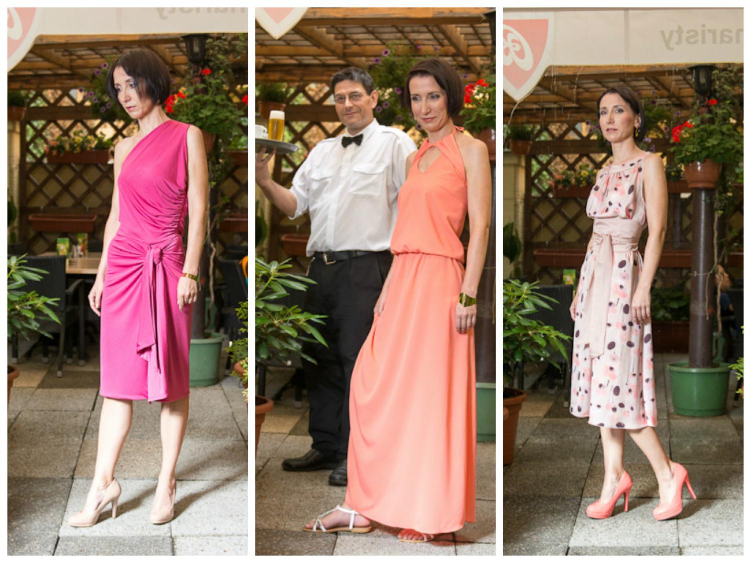 Paní Katka si nemusí dělat starosti, jakou barvu si oblékne! Šaty s uzlem z těžkého úpletu v syté růžové jsou pro ni jako stvořené. Šaty tohoto typu vezmete jak na večerní procházku po pláži, do divadla či do práce. Tělové lodičky mohou nahradit balerínky či pásková bota na korkové podešvi.