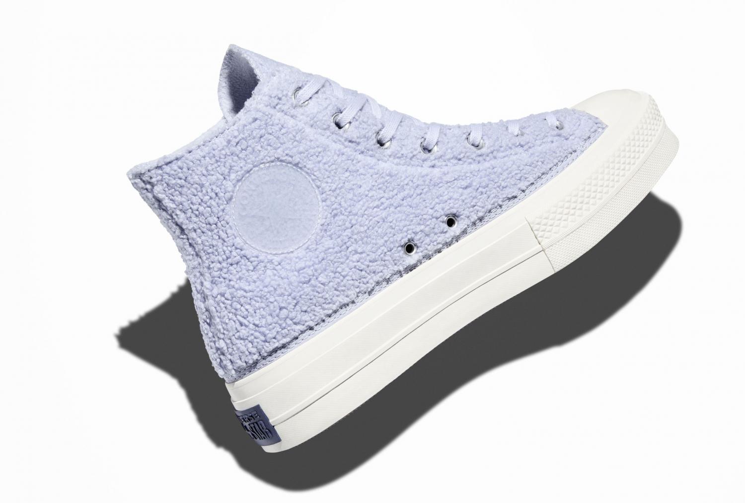Placka Converse z boku boty je oproti Chuck 70 v gumovém provedení a spolu s plochými modrými tkaničkami tvoří doladěné detaily, díky nimž je Chuck Taylor All Star Sherpa módní plyšová dokonalost, která udělá radost napříč generacemi.