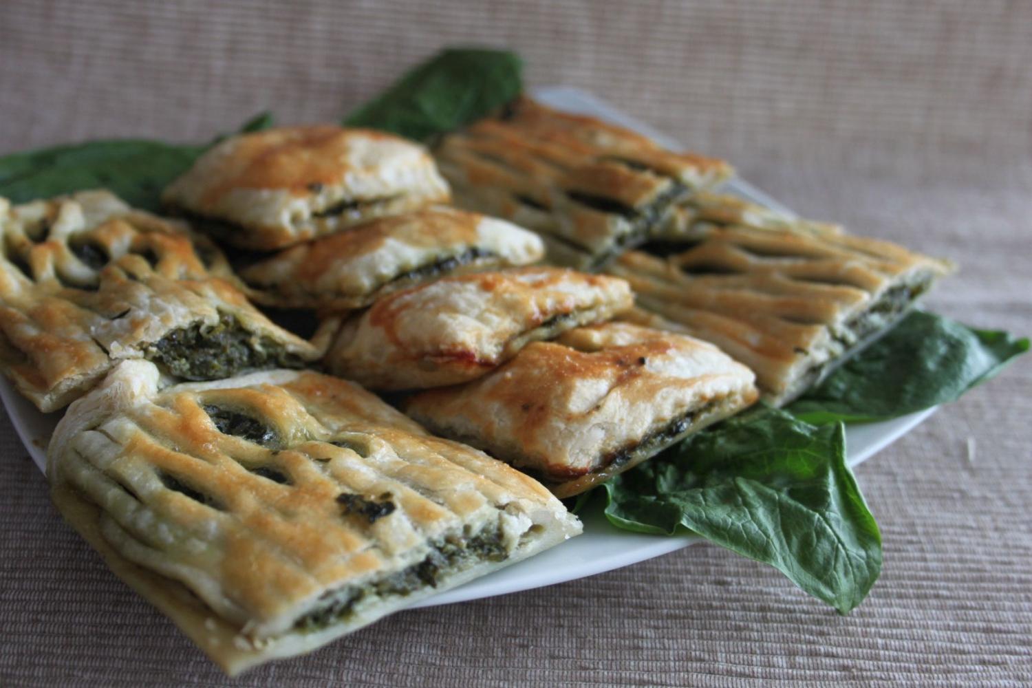 Začněte přípravou náplně. Na másle si orestujete nadrobno nakrájenou cibulku, přidáte nastrouhaný česnek a špenát, který jste si připravili podle návodu na obalu. Směs smícháme s nastrouhaným sýrem a smetanou, dochutíte solí a pepřem. Potom si rozválíte listové těsto. Vrchní polovinu kapes můžete ozdobit mřížkováním těsta, spodní část nechte plnou. Následně na plné části kapes nanášejte vychlazenou špenátovo-sýrovou náplň. Pro dokonalé spojení potřete okraj těsta rozšlehaným vejcem.