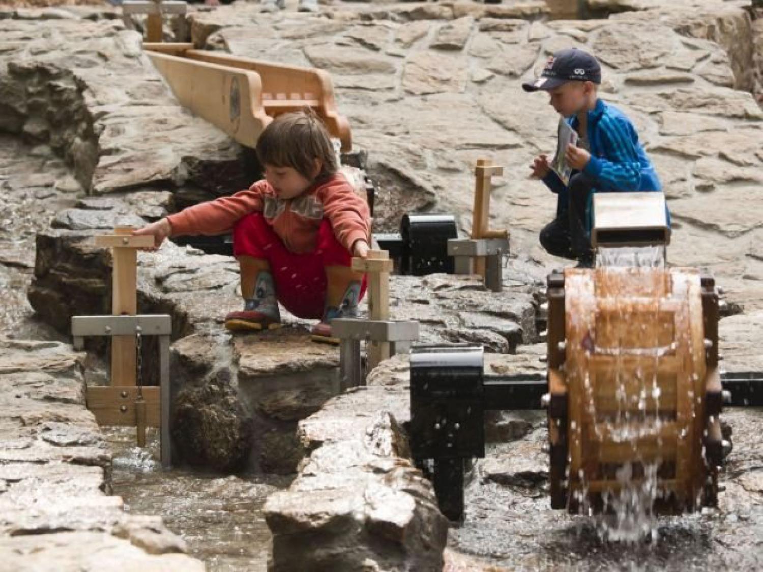 Všechny prvky vodního parku jsou interaktivní. Vaše děti si mohou vyzkoušet, co je bude bavit. V horní části parku voda vyvěrá v potůčcích, ale kudy poteče, to už určují malí i velcí návštěvníci pomocí více než třiceti mini stavidel. Následně vtéká do říčky a končí v brouzdališti. Cestou voda „potkává“ mnoho korýtek, dřevěných sudů či vodních kol, takže i malé dítě si poměrně jednoduše osvojí, jak to v přírodě funguje. Celou dráhu rovněž provází řada dalších atrakcí, například elektrárna. A pokud váš potomek chce, může s ostatními návštěvníky závodit s dřevěnými lodičkami.